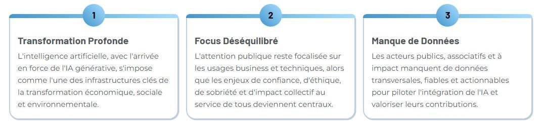 AI4Impact, le premier baromètre national sur l'intelligence artificielle au service de l'intérêt général. Et positionnez votre organisation comme leader de la transformation numérique de l'intérêt général et du bien commun.